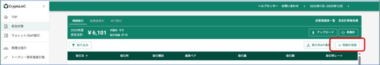 Zaifから年間収支を拾って入力し、登録をクリック。