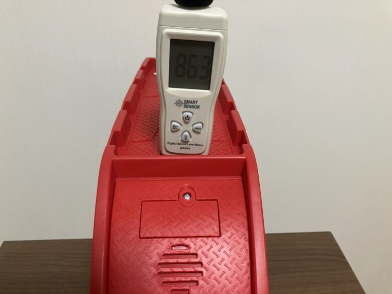 デジタル騒音計で測ってみたら、86.3dBでした。騒音レベルは「非常にうるさい」で地下鉄の車内